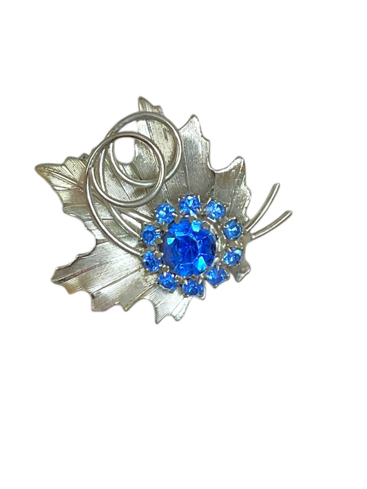 Beautiful silver Tone Facted Blue Crystal Flower bouquet Vintage Brooch
