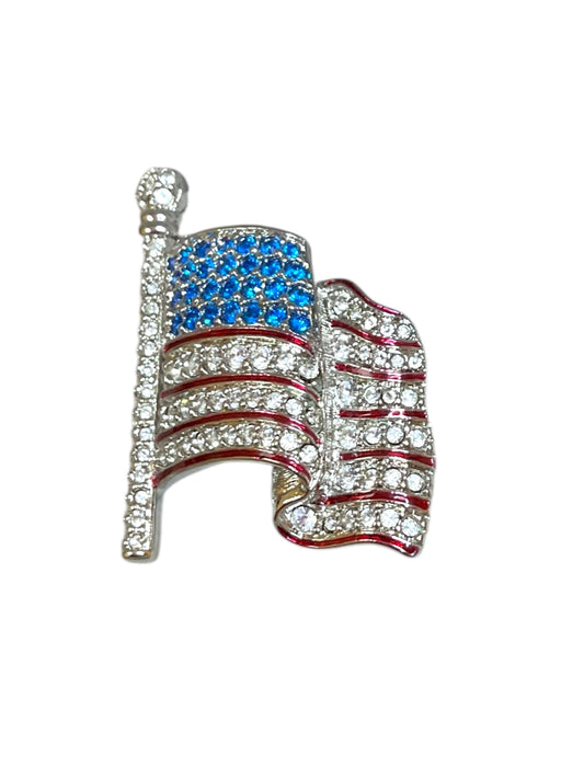 Swarovski Silver Tone Rhinestone US Flag Patriotic Brooch